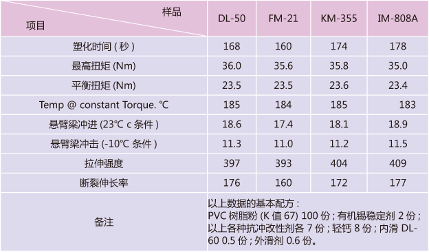■DL-50與國(guó)外同類產(chǎn)品的塑化及機(jī)械性能的對(duì)比表: